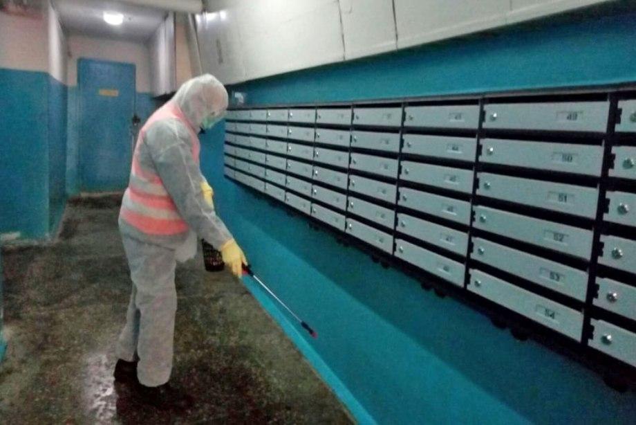 Работники жилищно-эксплуатационных участков Днепровского района провели влажную уборку дезинфицирующими средствами в подъездах жилых домов. Особое внимание уделили обработке перил, лестничных клеток, кабин лифтов, ручек, входных дверей, домофонов и тому подобное.