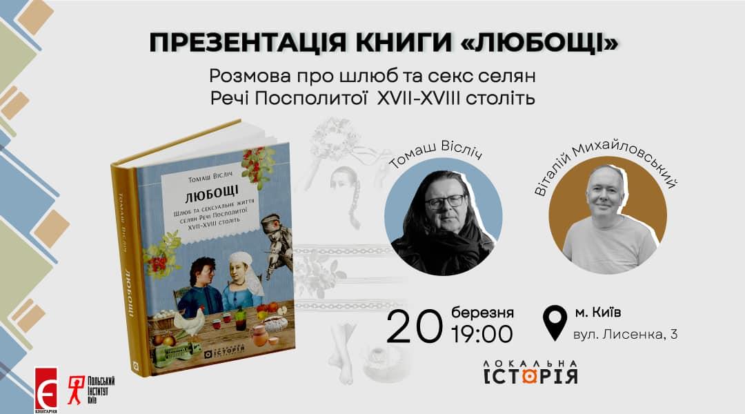 «Книгарня «Є» запрошує на зустріч та презентацію книжки «Любощі. Шлюб та сексуальне життя селян Речі Посполитої XVII–XVIII століть».