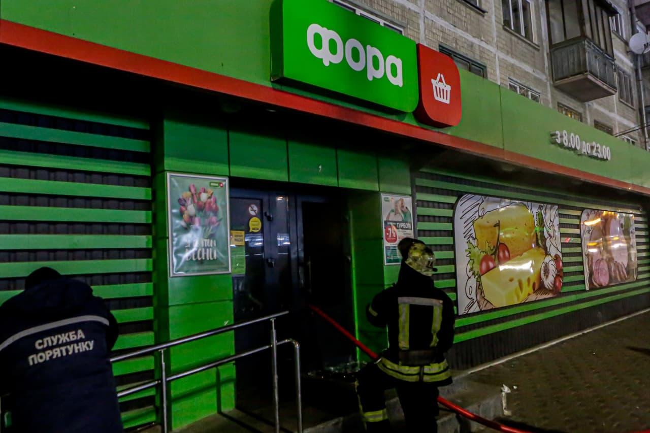 Як повідомляє ДСНС, пожежа виникла у 5-поверховому житловому будинку на першому поверсі магазину, сталося загоряння касової зони та стелажів на площі 30 кв.м.