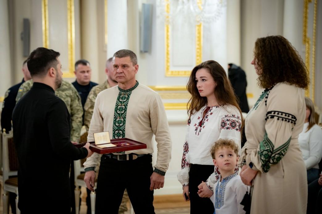 Президент України Володимир Зеленський вручив Золоту Зірку Героя України родині полковника Повітряних Сил ЗС України Максима Устименка.