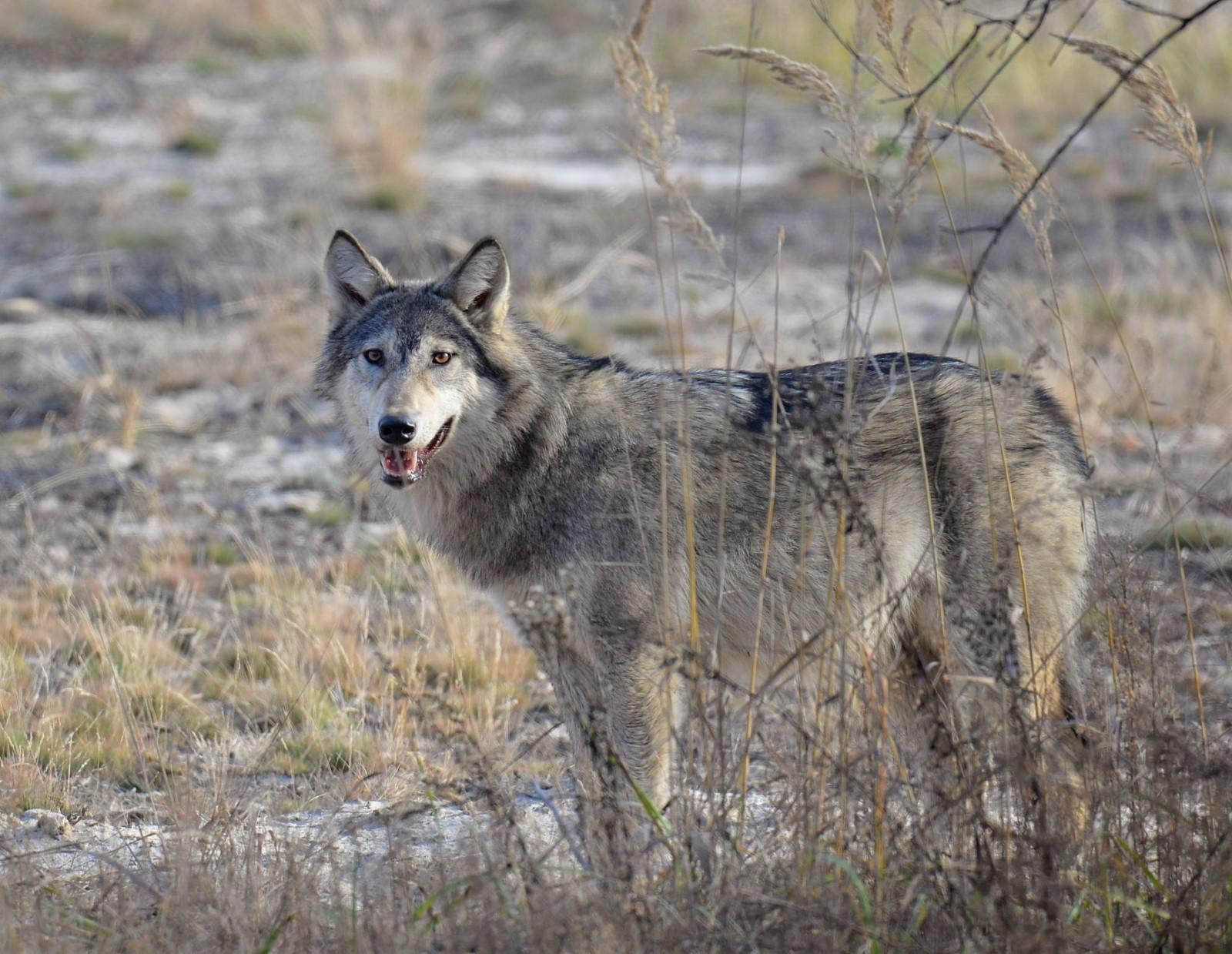 За його словами, це була група вовків із чотирьох особин. Усі вовки, крім одного молодого та спокійного, пішли у чагарники. А от молодий вовк став “моделлю” для камери автора фото.