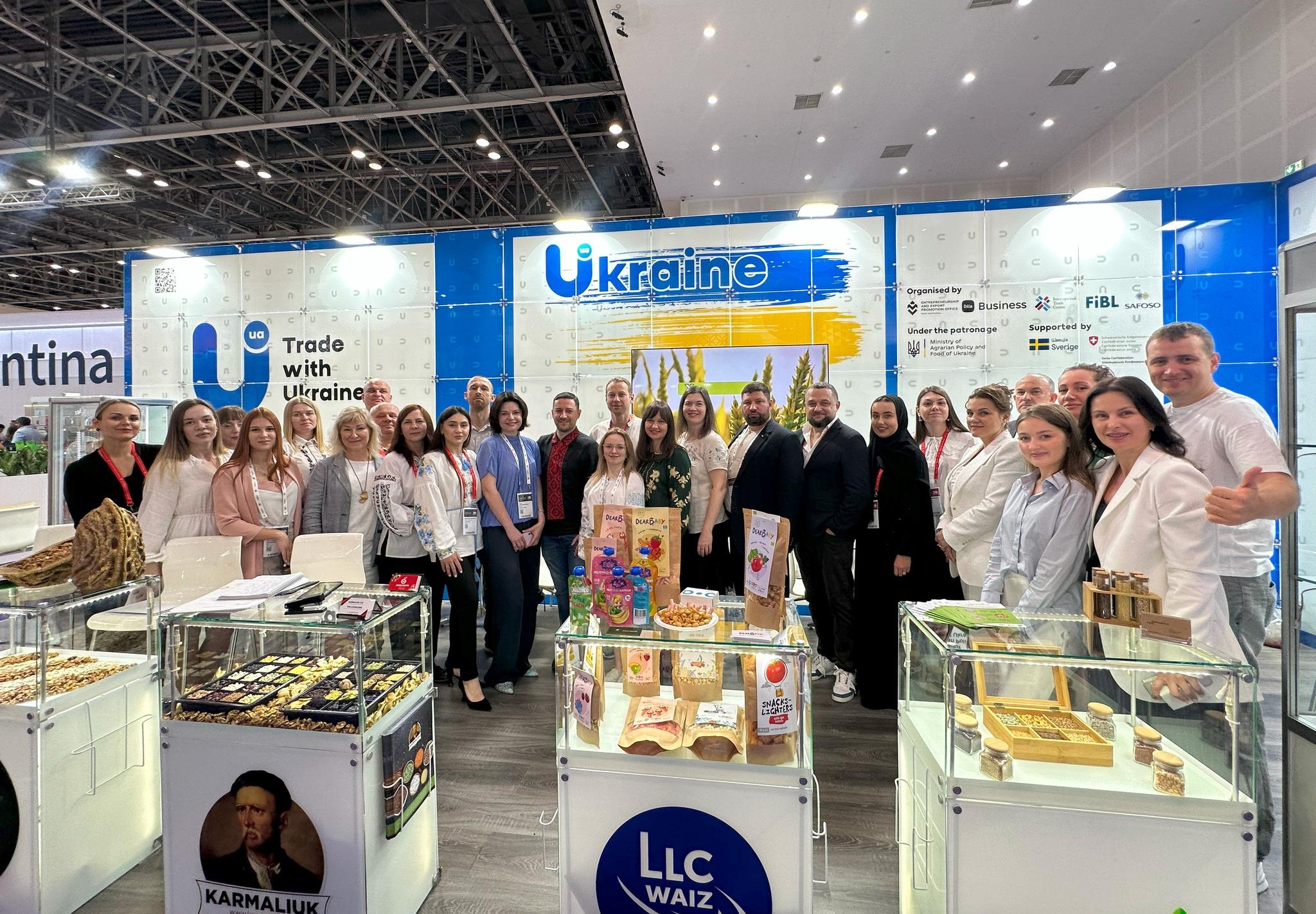Цьогоріч за підтримки Швейцарії 7 експортерів органічної продукції представили українську органічну продукцію у межах Національного стенда України. Ще 5 компаній презентували свої товари у межах першого Національного молочного стенда України. Для всіх компаній-учасників молочної експозиції участь у Gulfood стала дебютною.