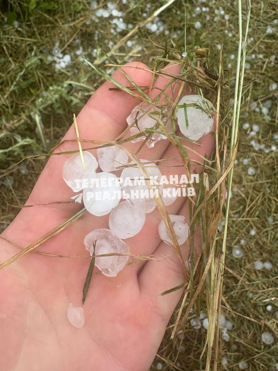 Місцями у столиці також спостерігається град, а сильний вітер зносить дерева.