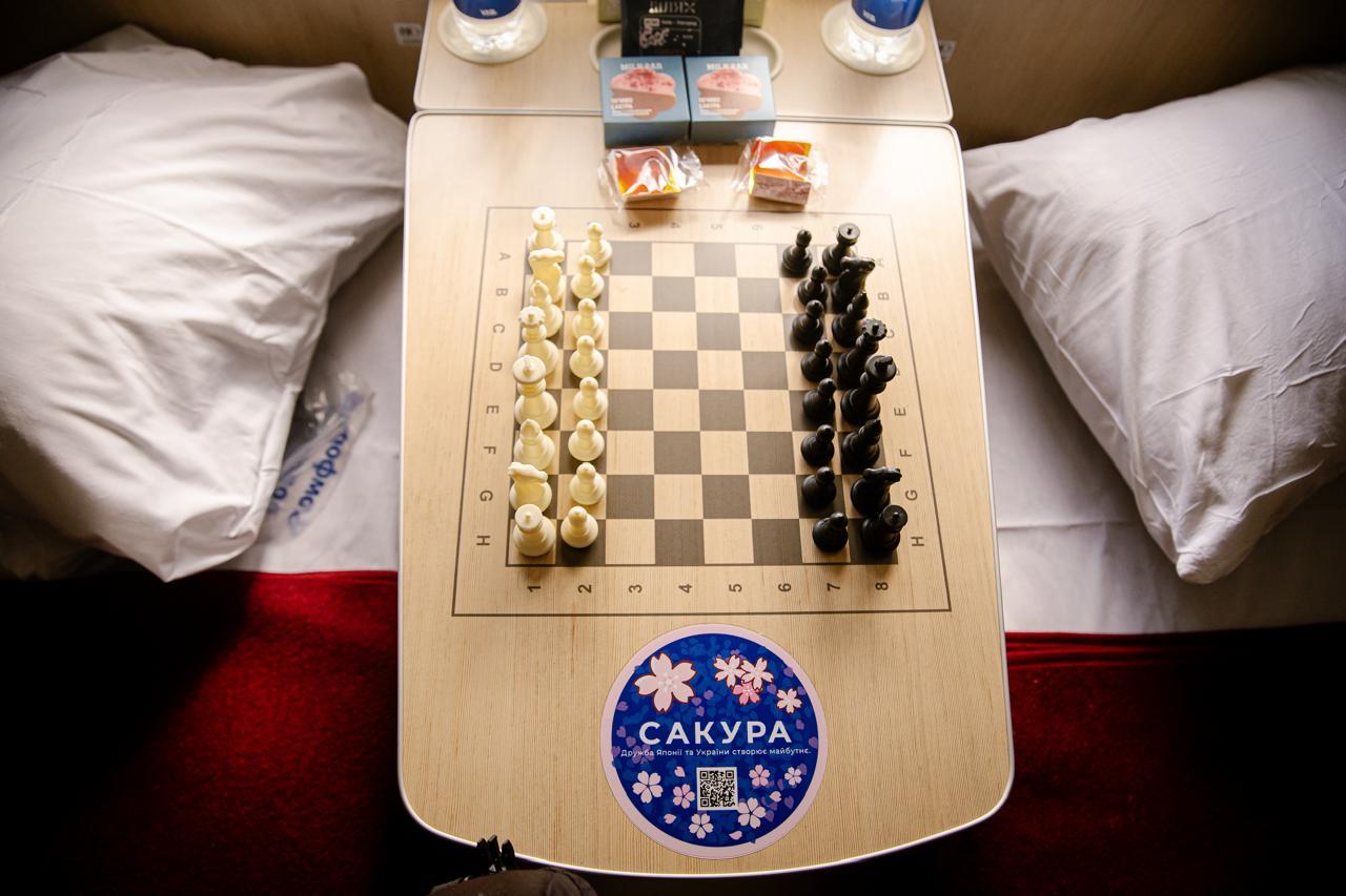 Між іншим, зі світлин Федерації шахів України можна побачити, що перші шахівниці поставили у новому поїзді “Сакура”. А він з 28 квітня курсує з центру на захід на базі оновленого поїзда №81 Київ — Ужгород оєднує два українські міста, де навесні пишно квітнуть сакури — квітка-символ Японії.