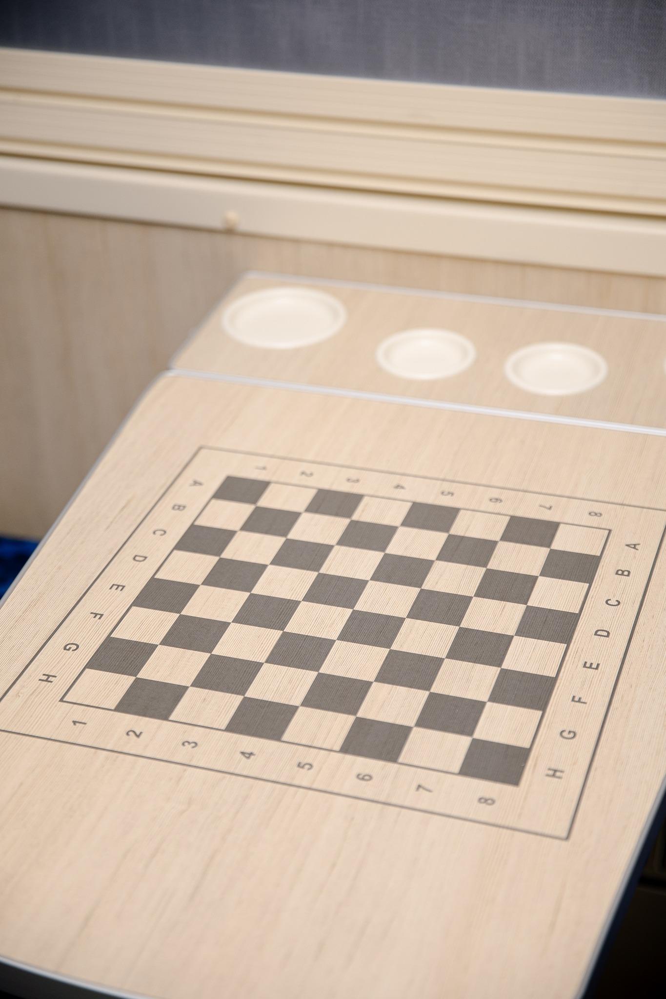 Одна з родзинок всіх нових комфортних вагонів – інтегровані шахівниці на столиках у купе