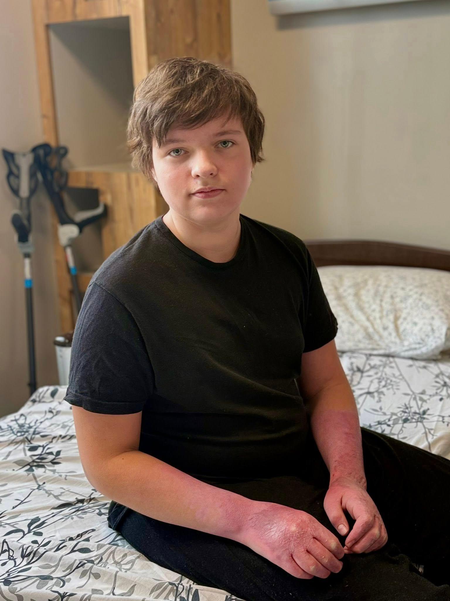 Дитина отримала тяжкі опіки під час нещасного випадку вдома,коли хлопець разом із батьком та дідусем фарбував дах будинку. Було уражено близько 40% поверхні тіла, зокрема руки, ноги та обличчя.