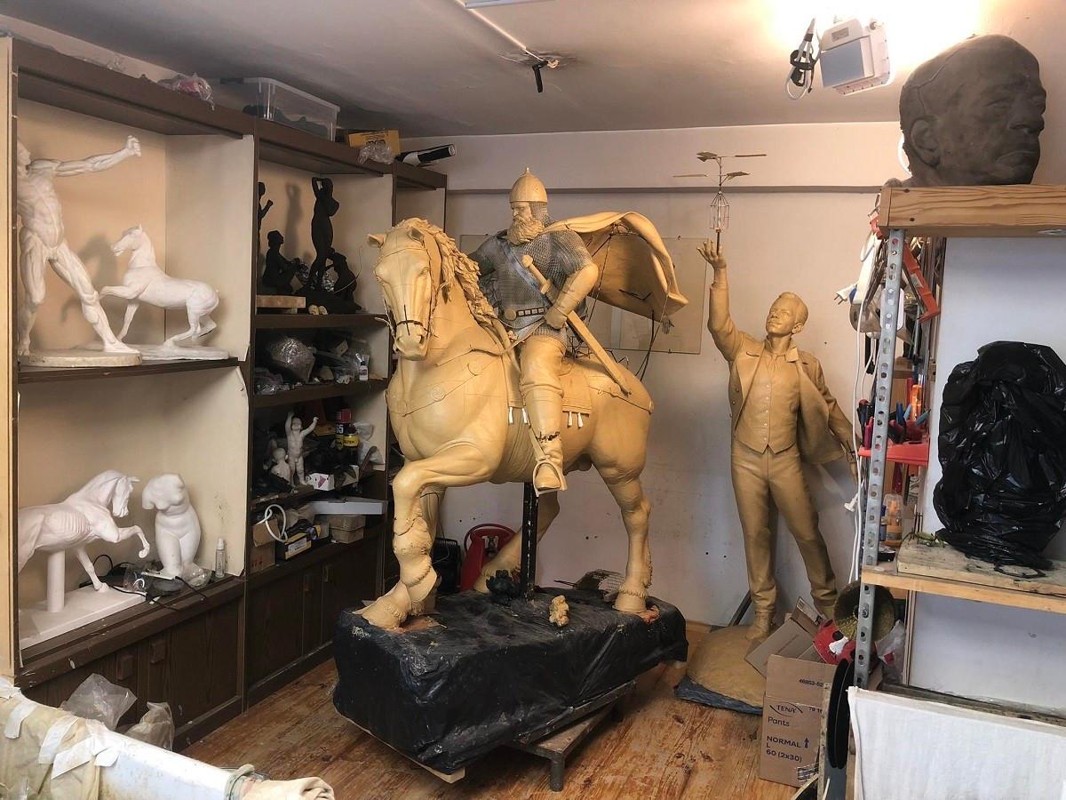 Пам’ятники усі, що я робив – малюки-засновники Києва на Поштовій, Іллі Муромцю і пам’ятник Анатолію Кузнєцову, Сікорському, актору Віталію Лінецькому робились тут. І майбутні пам’ятники, я надіюсь, будуть робитись в цій майстерні. В майстернях робиться багато різних проектів. І я зараз веду проект важливий для міста (поки не можу розголошувати). Багато тут відомих творців – Вайсберг, Бевза, Соломко, до 80-ти відомих художників. У нас є художник-фотограф Ігор Паламарчук в лавах ЗСУ. Часом приїжджає – а тут таке. Там холоди в окопах, всюди, на полігонах, і хочуть ще й тут відключити, в майстерні, де пропрацював багато років.